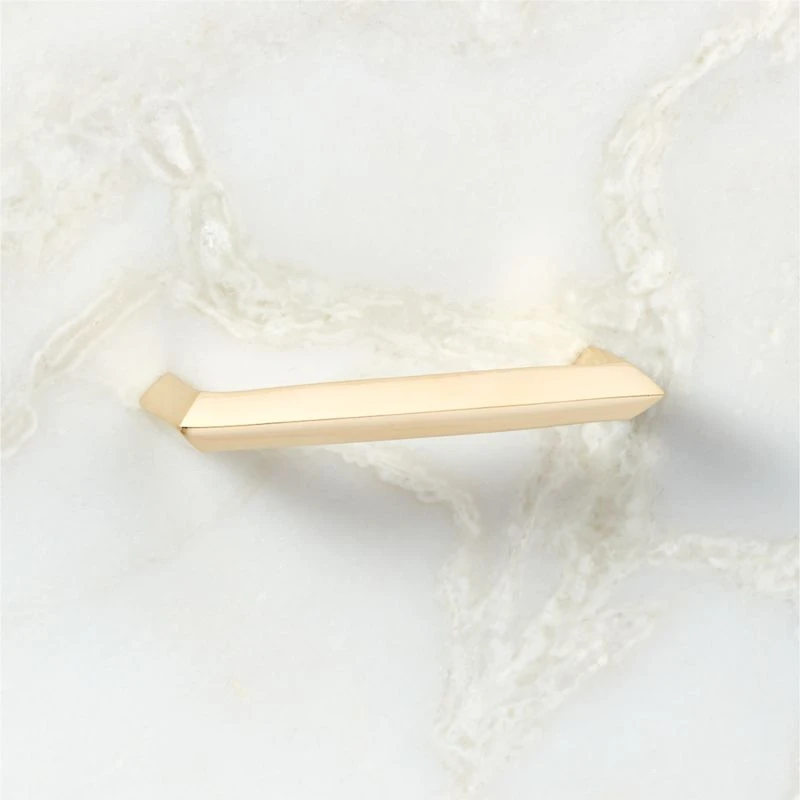 Designed by Barcelona-based Mermelada Estudio, these unique beveled handles bring sharp lines and a touch of modern luxury to any interior. Solid brass is unlacquered for a living finish that will patina beautifully over time. CB2 exclusive.