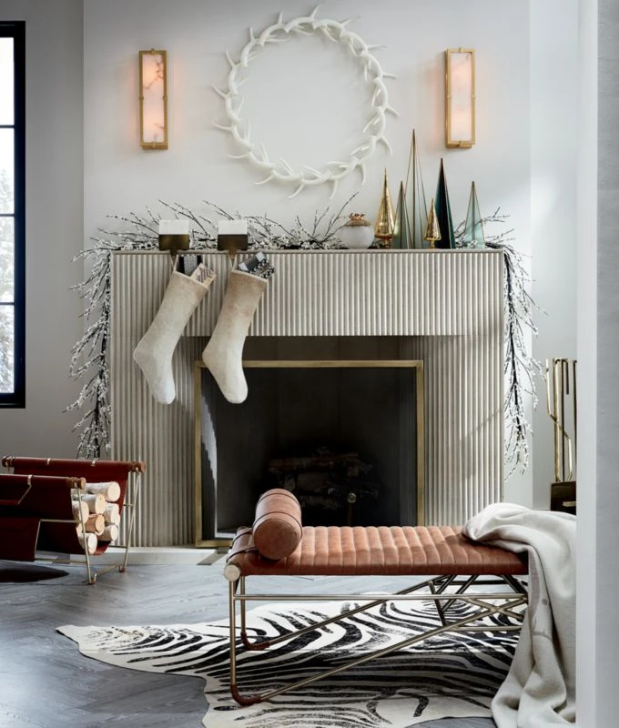 Handcrafted of stainless steel with brushed brass finish , refined fireplace tools hang out of the way for a clear view of the hearth. Shovel, broom, tongs and poker hook over freestanding bar via sleek squared-off handles. Tends the fire indoors or out. CB2 exclusive.