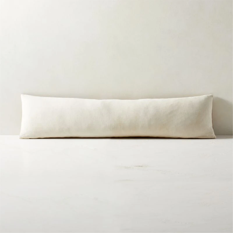 Genuine saddle leather is stitched together to create a long, luxe throw pillow. Gorgeous tonal stitching and an exposed brass zipper give the pillow a high-end feel. Flips to natural cotton/linen blend back. CB2 pillows include a pillow insert in your choice of feather down or down alternative. CB2 exclusive.