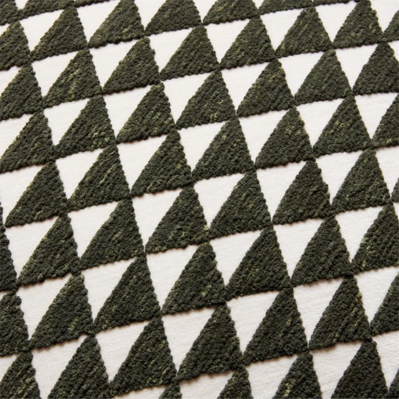 A backdrop of rich warm white velvet fabric highlights a captivating geometric design. Stitched in dark green chenille embroidery, the pattern adorns the front while the smooth, unadorned velvet continues to the back. A hidden zipper ensures a neat finish. Looks especially bold when paired with the smaller Alene pillow. CB2 pillows include a pillow insert in your choice of feather down or down alternative. CB2 exclusive.