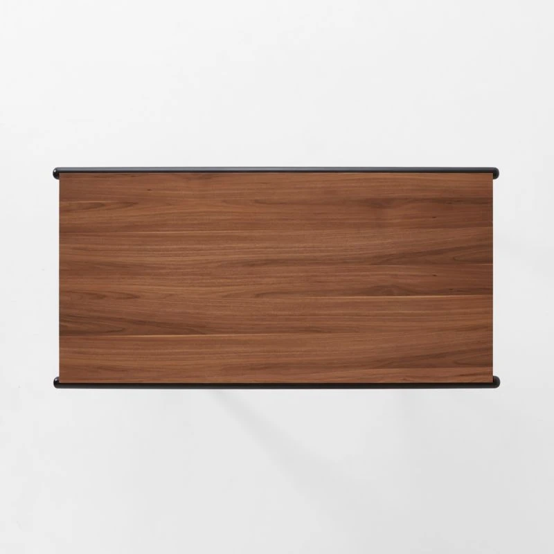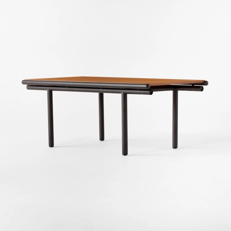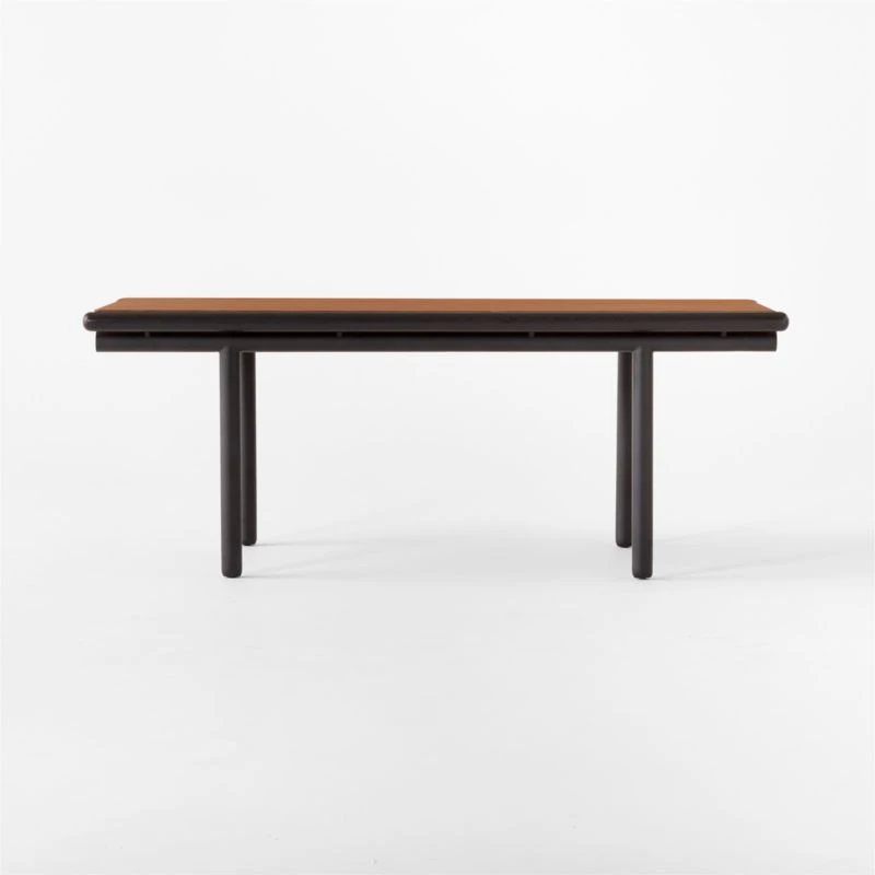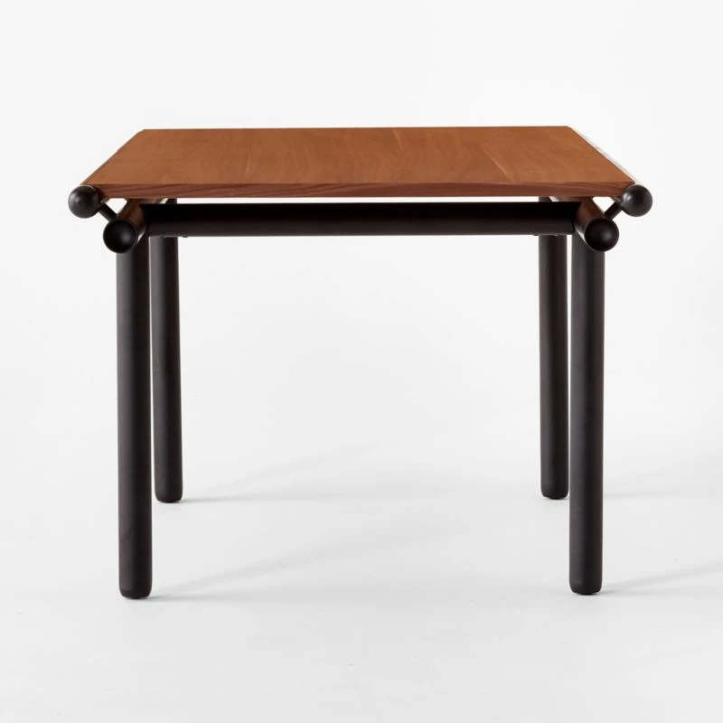 Based on an original Gianfranco Frattini design from 1985, this rectangular dining table is a tribute to Japanese woodworking techniques. Structurally complicated but striking in its simplicity, the sleek ebonized ash and iron tube base easily supports a tabletop of walnut certified sustainable by the Forest Stewardship Council ®. The ebonized ash wood on the base is lightly wire-brushed to emphasize the grain, making the table as beautiful up close as it is from a distance. CB2 exclusive.