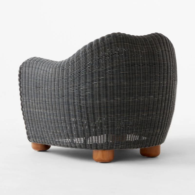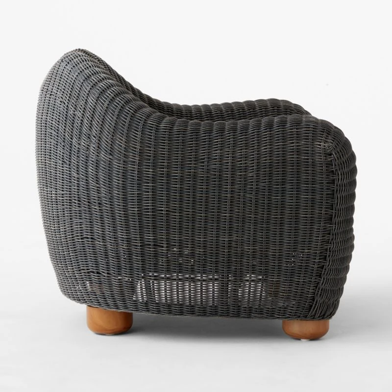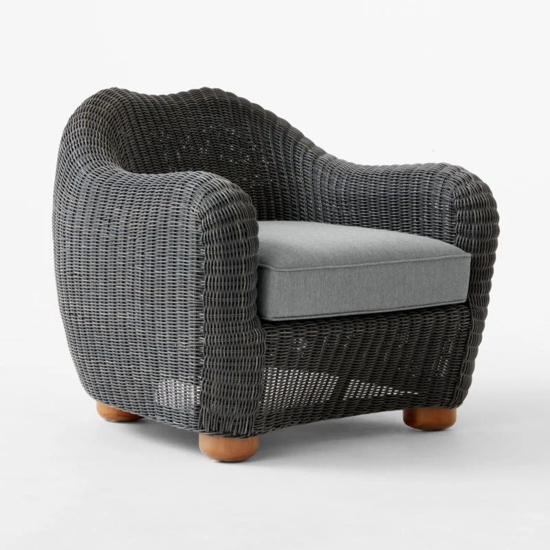 The bestselling Bacio upholstery collection goes outside in one of designer Ross Cassidy’s favorite materials: faux rattan that has all the natural appeal of the real thing, but will stand the test of time. Charcoal grey all-weather lounge chair rests atop rounded feet crafted from eucalyptus and is exceptionally easy to live with, thanks to a pewter grey cushion wrapped in Sunbrella performance fabric. CB2 exclusive.