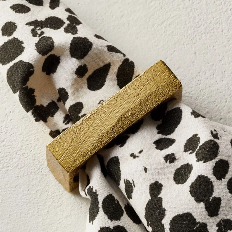 Made from cast aluminum with an electroplated gold finish, rectangular napkin “rings” are like jewelry for your table. Unique shape brings a fresh, modern vibe to any place setting. CB2 exclusive.