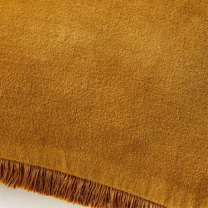 Rich tonal color is the secret to this seriously luxe pillow. Deep tapenade velvet is edged in a fringe of darker yellow-green for a look that’s polished and pulled together. CB2 pillows include a pillow insert in your choice of feather down or down alternative. CB2 exclusive.