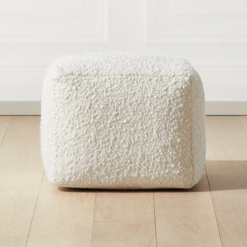 Boucle Ivory White Pouf 18″Wx18″Dx14″H