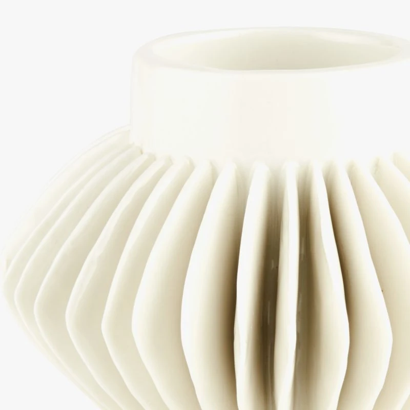 Celia White Vase. 4.75″ dia. x 5.75″H