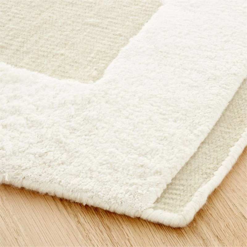 Luxe viscose weaves a thin, silky rug with an ivory-on-ivory design. Skilled artisans knot viscose threads by hand over wool warps for a natural feel with a subtle sheen. With 22–24 knots per square inch, the high-low pile design is ideal for low-traffic areas. Designed by Transition State, an LA-based design studio that defines laid-back luxury. CB2 exclusive.