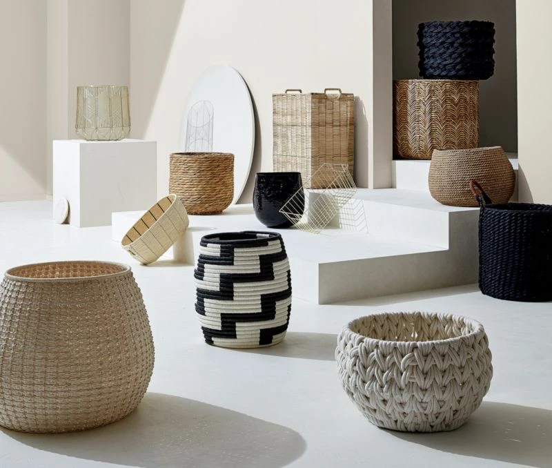 Sturdy iron frames disappear under a super-chunky, inverted “V” weave. Rectangular basket is large enough to hold toys, magazines, books, remotes, etc., and fits nicely on a bookshelf. CB2 exclusive.