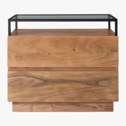 Kingsbury Low 4-Drawer Curved Oak Wood Dresser With Marble Top