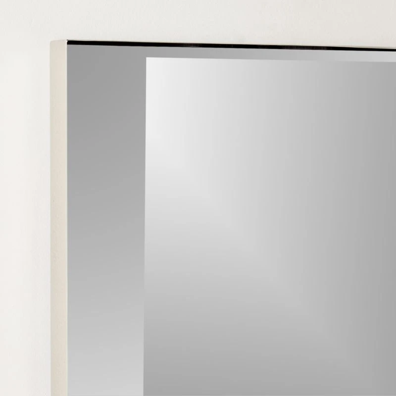 Beveled edges and brass line up in a handcrafted rectangular mirror that boasts both simplicity and depth. Solid brass is finished in polished nickel for an elevated look that hangs stunning above a vanity or as a goes-anywhere decor piece. Part of the Graduate mirror collection. CB2 exclusive.