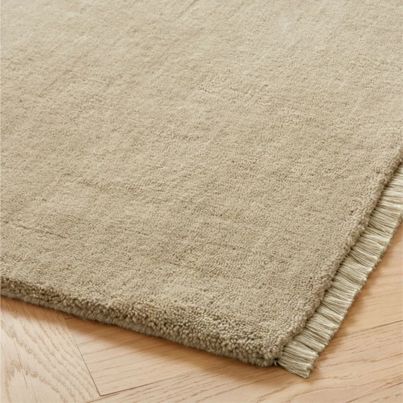 The artistry is in the details of this handloomed rug. Made of soft wool for a cozy feel and finished with viscose fringe at each end for a bit of sheen. Rug is dyed piece by piece by skilled artisans to create neutral abrash—beautiful color variation that runs horizontally across the piece. Arabic for “mottled,” abrash makes the rug look perfectly lived in from the start. CB2 exclusive.