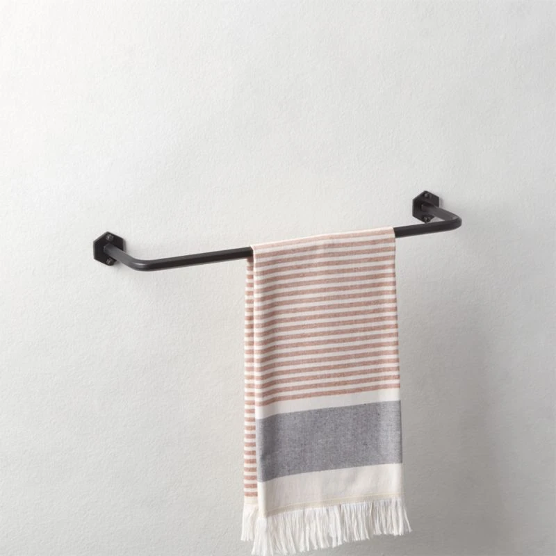 Graphic hexagon in matte black elevates towels with chic sophistication. Pair with Hex toilet paper holder to complete the look. CB2 exclusive.