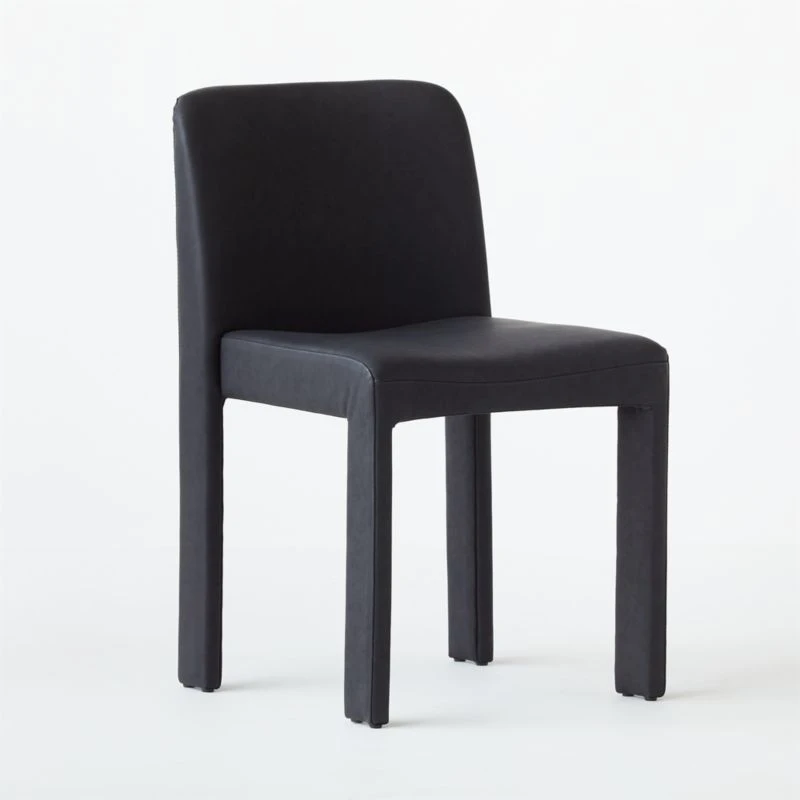 Super sleek dining chair upholstered from top to bottom in faux black leather. No hardware in sight. Padded seat and back add extra cushion, making this chair practically perfect. CB2 exclusive.