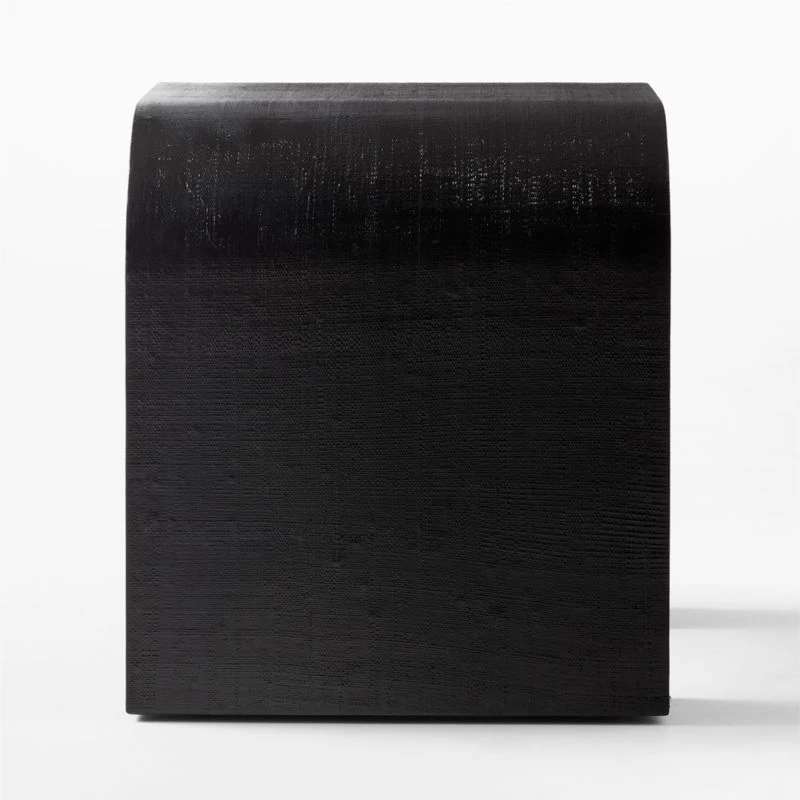 Inspired by 1970s modern silhouettes and unique materials, VUUE’s design turns a simple U-shaped form into a statement side table with extra-rich texture. Raffia wraps the piece, finished in hi-gloss black. Mixes effortlessly with any modern living situation. Learn more about VUUE on our blog. CB2 exclusive.