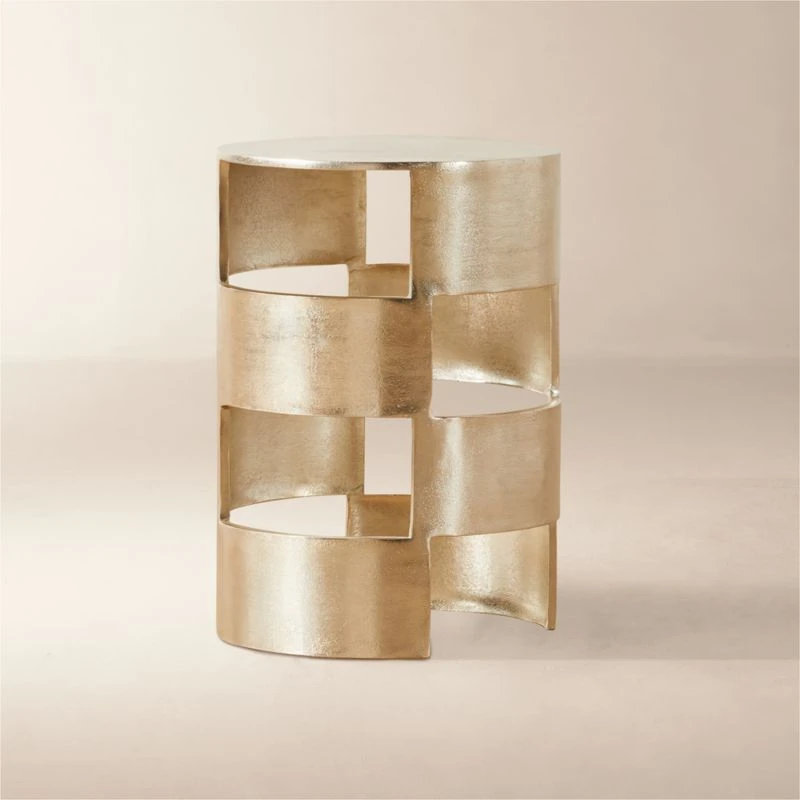Made from cast aluminum and designed to look like a rigid, stacked checkerboard, side table by architect-designer Jerome Byron appears paper-thin and lightweight. Hand-poured, sand cast aluminum has a luxe silver finish and natural variations from the casting process that add to its unique characteristics. CB2 exclusive.