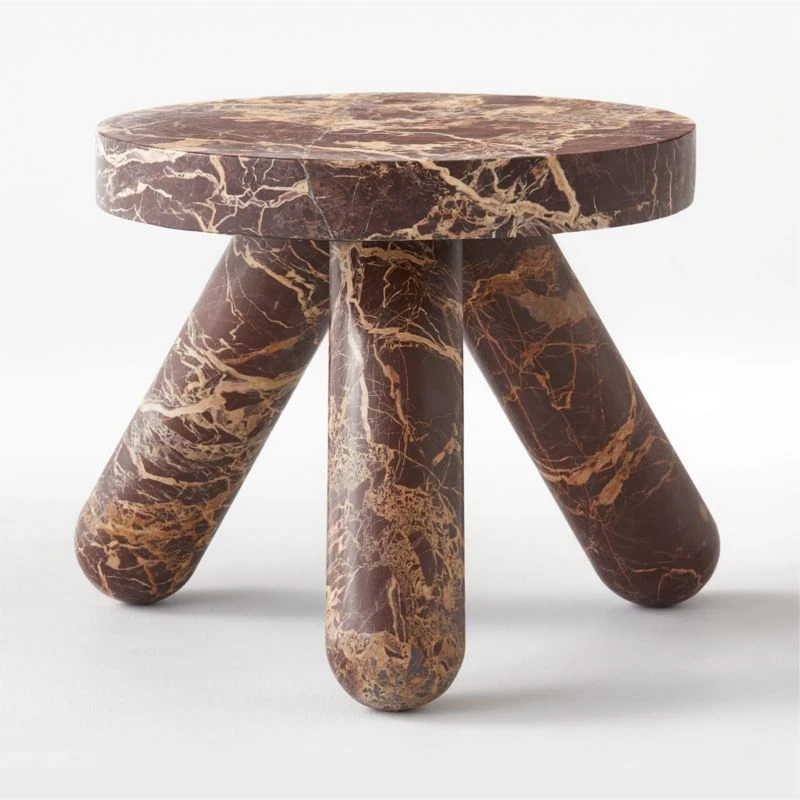 Designed by Studio Anansi, unexpected side table turns furniture into art. Solid red levanto marble with striking gold tones and veining. Hand-finished with three rounded legs that look straight out of a modern art museum. Learn about Studio Anansi on our blog. CB2 exclusive.