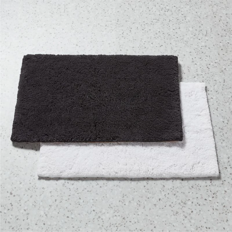 Introducing our most luxurious bath textile collection yet, woven of decadently thick organic cotton. Ultra-plush and absorbent black bath mat coordinates with matching bath towels. CB2 exclusive.