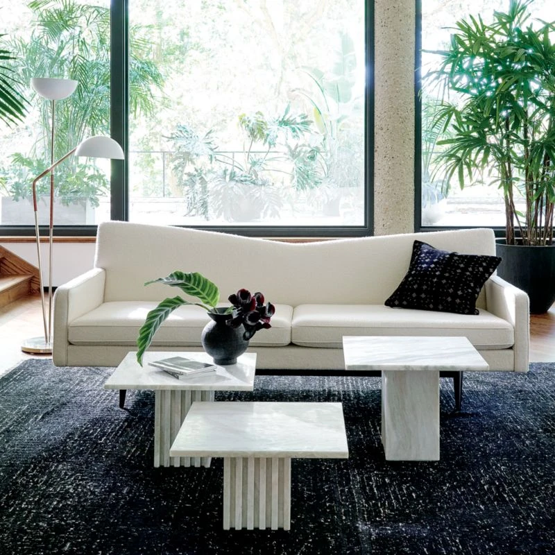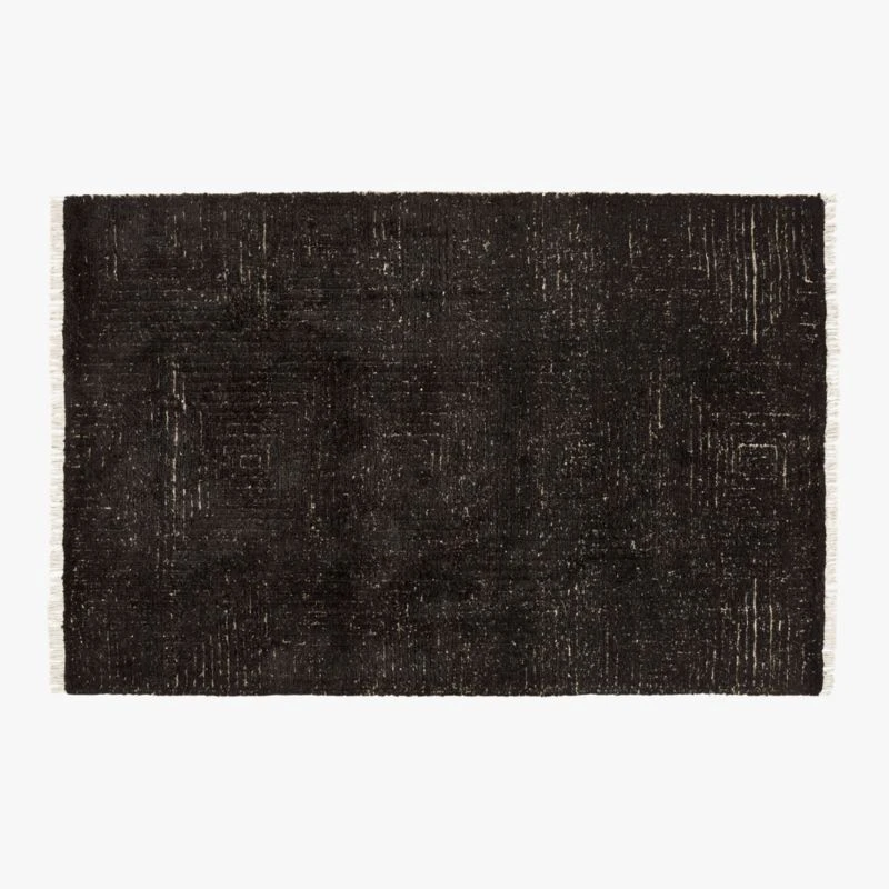 Hand-knotted from silky black viscose threads for a natural finish with a luxurious sheen. It’s sophisticated minimalism at its best. CB2 exclusive.