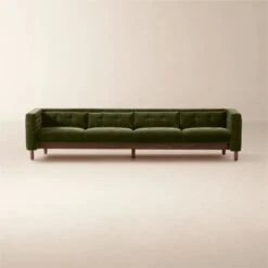 Marconi 4-Seater Tufted Green Velvet Sofa 105″Wx32.5″Dx23.75″H