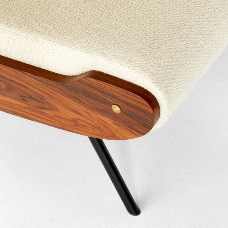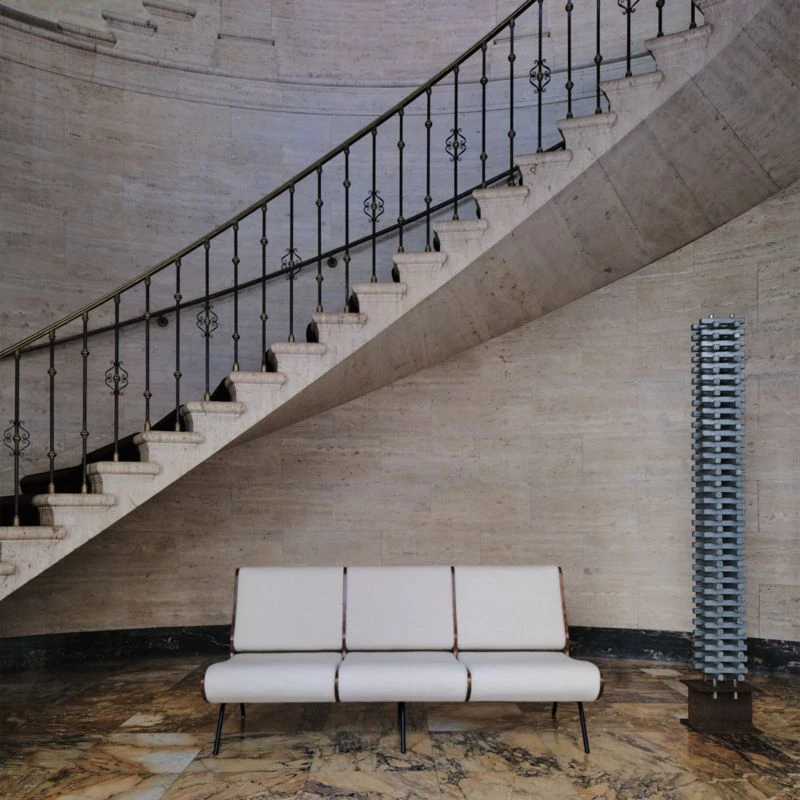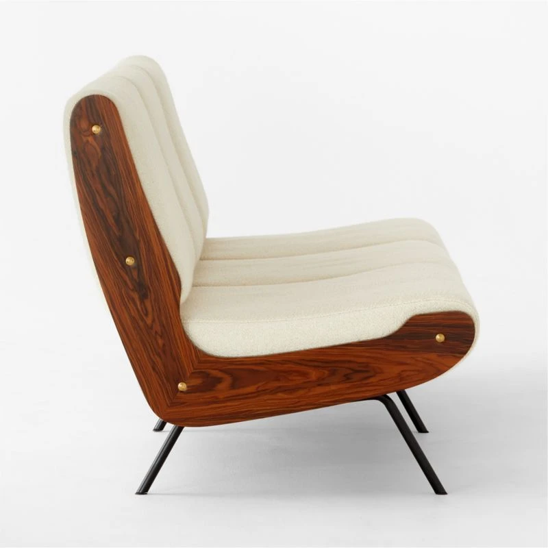Designed early in Gianfranco Frattini’s career, this streamlined sofa evokes the poetic minimalism of 1950s modernism. The now-iconic Italian design has been updated for contemporary audiences, with a sumptuous wool-blend fabric in creamy ivory and black metal legs. Structurally held together by exquisite walnut side panels, the geometry is true to the original—down to the brass snake-eye bolts. Meant to be read from the side, its full beauty becomes apparent in profile. Called Model 836 at the time of its debut, the sofa received a mention at the prestigious Compasso d’Oro awards in 1955 and remains a noteworthy choice today. CB2 exclusive.
