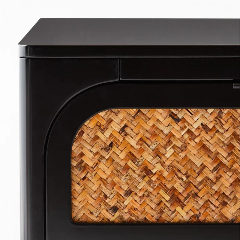Beauty is in the details of this gorgeous bedroom staple. Designed by Jannis Ellenberger, solid poplar with black satin finish frames the nightstand. Natural rattan weaves across the two drawer fronts with black powdercoated pulls. Learn more about Jannis Ellenberger on our blog. CB2 exclusive.
