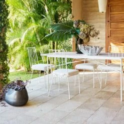 Pavilion Ivory Outdoor Dining Armchair With Striped Sunbrella ® Cushion Model 6470 Set Of 4