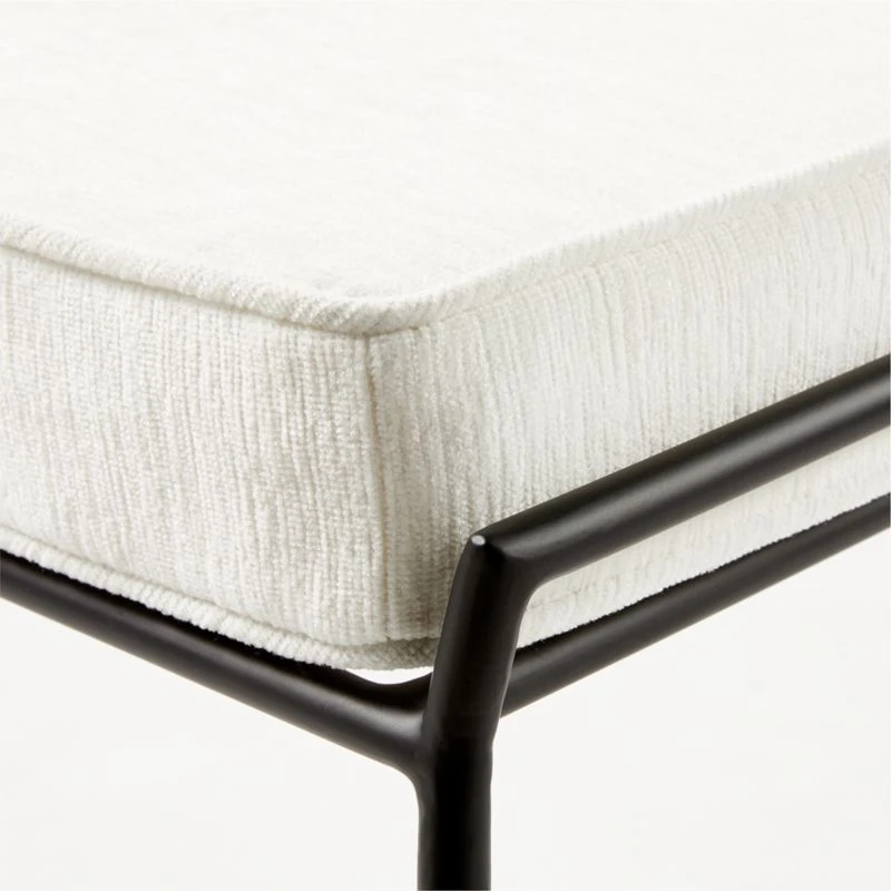 First introduced as part of the Aerial Dining Group in Paul McCobb’s 1952 Pavilion Collection, this armless dining chair was designed to be durable, beautiful and easy to care for. Solid iron frame will stand both the elements and the test of time, as will the reversible cushion in ivory Sunbrella fabric. The Pavilion Collection was featured in the June 1953 issue of House & Garden magazine in an original McCobb illustration, yet doesn’t feel at all out of place in a modern outdoor space or even an indoor dining room. CB2 exclusive.