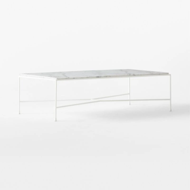 First introduced as part of the Cabana Group in Paul McCobb’s 1952 Pavilion Collection, this outdoor coffee table was designed to be durable, beautiful and easy to care for. White Venato Carrara marble top contrasts with the modernity of the solid satin ivory iron frame. The Pavilion Collection was featured in the June 1953 issue of House & Garden magazine in an original McCobb illustration, yet doesn’t feel at all out of place in a modern outdoor space or even an indoor living room. CB2 exclusive.