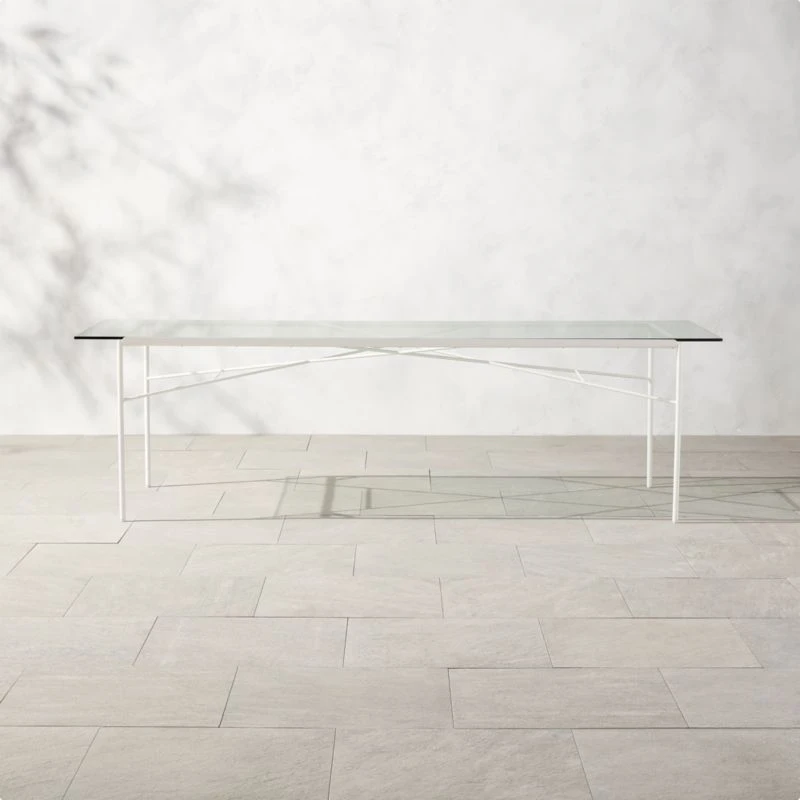 Pavilion Large Ivory Metal Outdoor Dining Table with Glass Top Model 6142 100″Wx34.5″Dx28.63″H