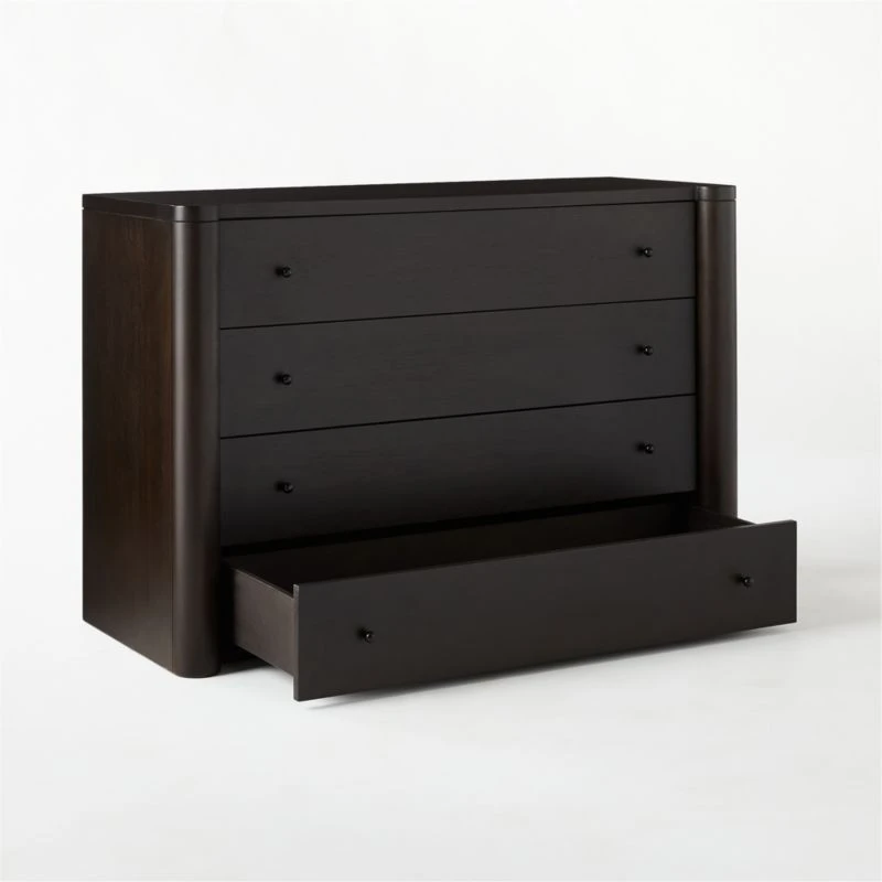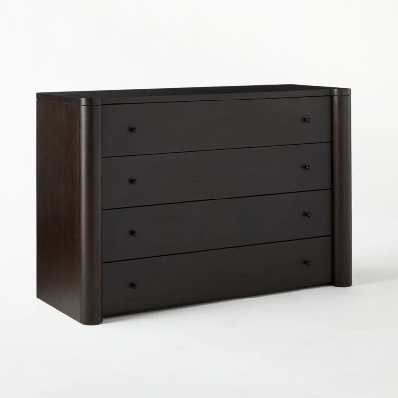 Port Low 4-Drawer Blackened Walnut Wood Dresser 48″Wx19″Dx32″H