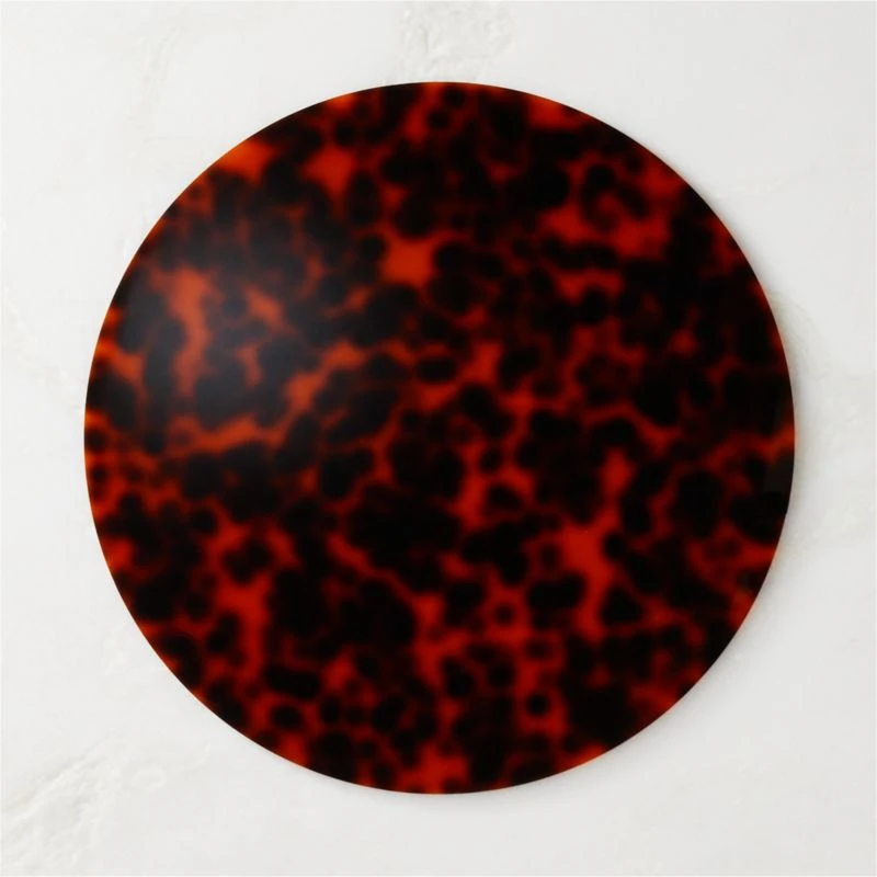 Tortoise acrylic placemat makes a statement on the table. High-low brown hues create a classic tortoise pattern. CB2 exclusive.