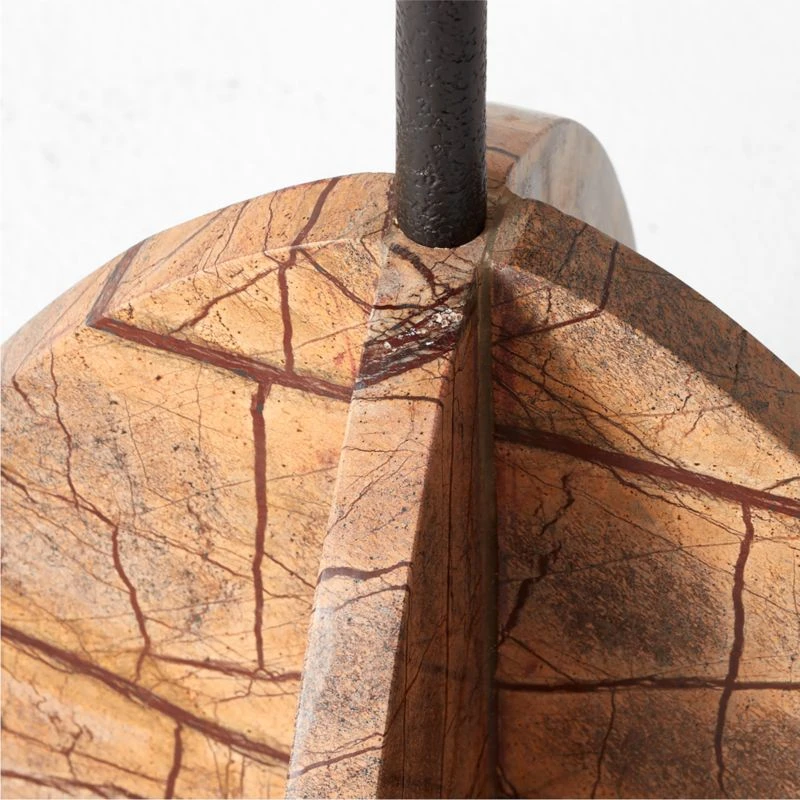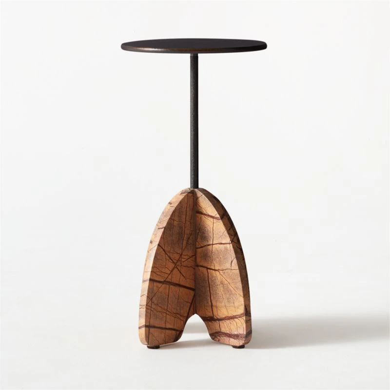 Mermelada Estudio mixes metal and marble to create this unexpected side table. Taking design elements from the French industrial and Cubist movements, cast aluminum top contrasts with a curved marble base. Quarried in India, polished Brown Forest marble is known for its striking orange and tonal grey veining, giving the piece a refined look. CB2 exclusive.
