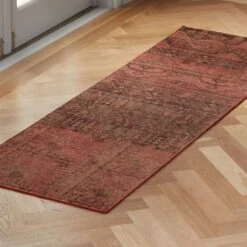 Sourced from the small town of Taspinar in central Turkey, this one-of-a-kind vintage rug was hand woven decades ago by artisans known for weaving intricate designs in pure wool. Deep tones of red with washed yellow and black are edged in a fine .75″ fringe. Flat weave design is exceptionally good for high-traffic areas.