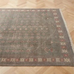 Handcrafted decades ago by the nomadic people of central Turkey, vintage wool rug is characterized by a faded Oushak pattern in the low pile. Made of pure wool using a double-knot technique for durability, one-of-a-kind heirloom rug will last for years to come. CB2 exclusive.